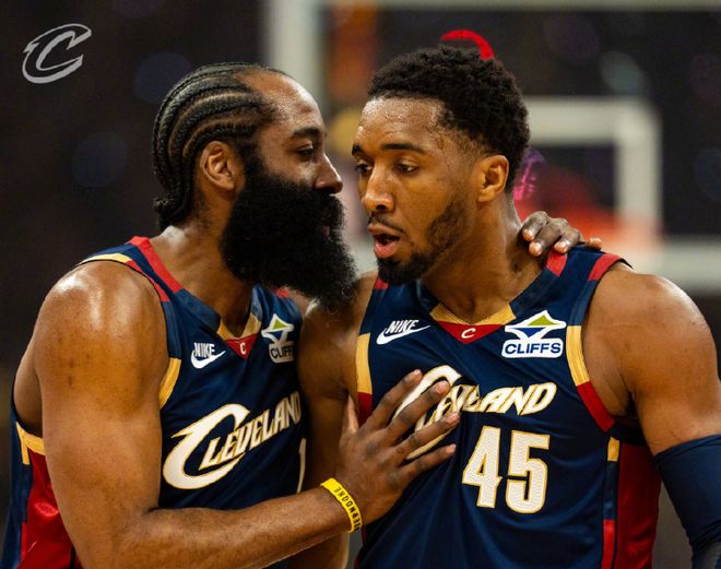 骑士灭猛龙总分2-0:哈登28分创3项里程碑 米切尔30+7+5